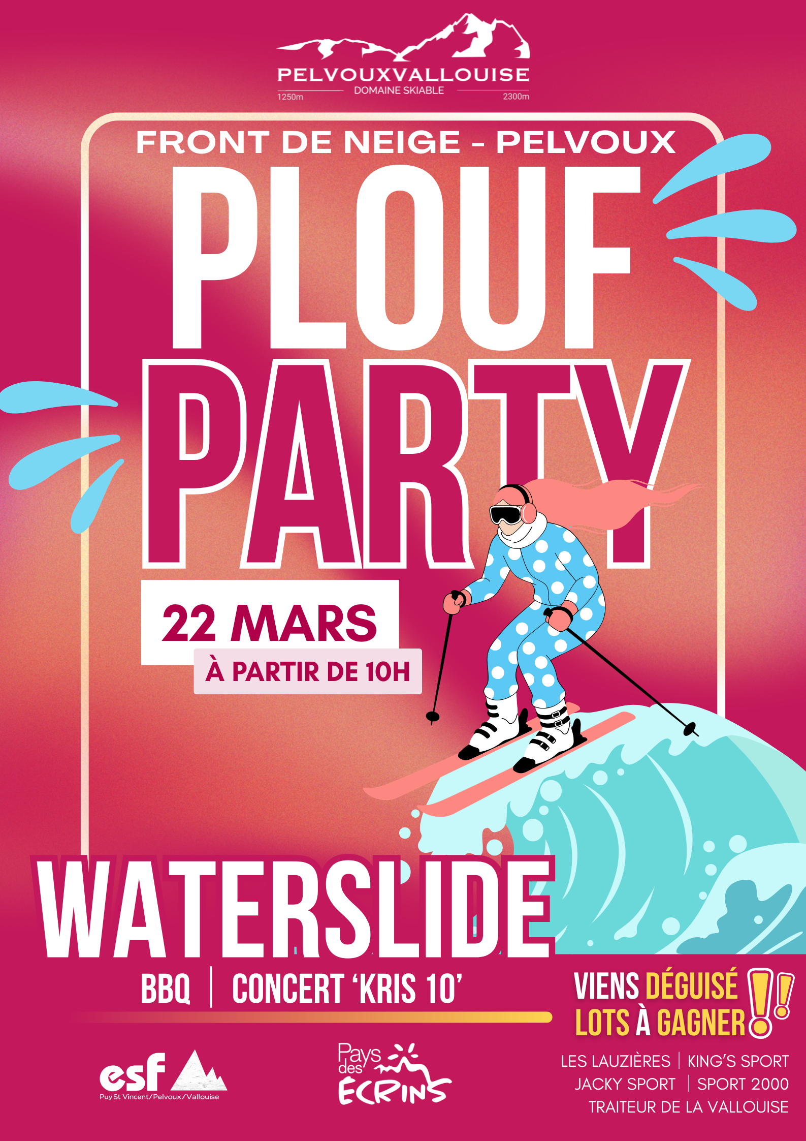 Rendez-vous le 22 mars dès 10h pour une journée fun et déjantée ! Tente la waterslide sur le front de neige et enchaîne avec un moment convivial autour du BBQ au restaurant des Lauzières. Viens déguisé : des lots sont à gagner pour les meilleurs looks !